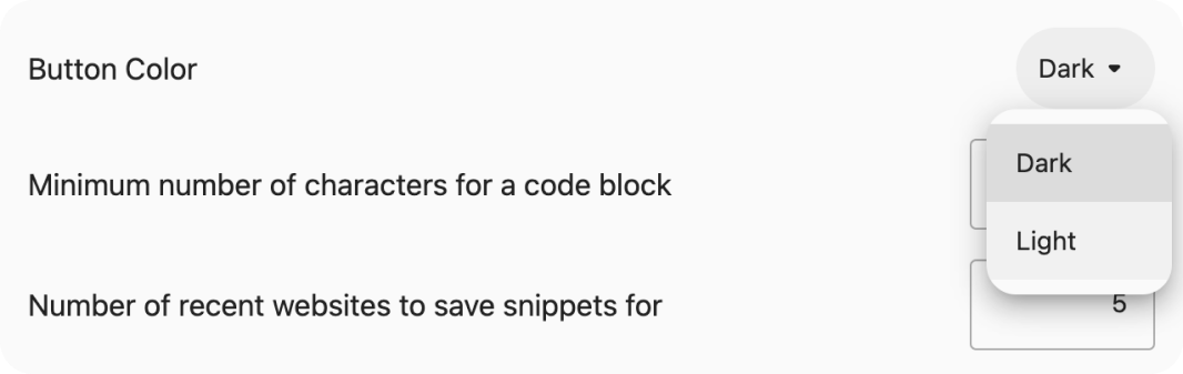 • Set the number of recent websites for Pieces to display snippets in the History tab of the extension.